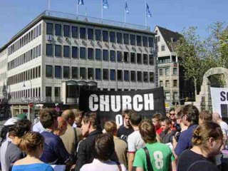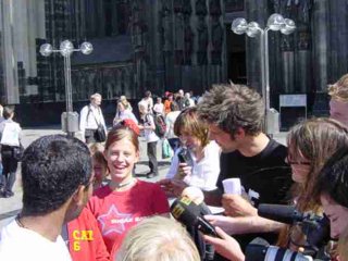 Christoph Schlingensief die Besucher auf der Domplatte zu Köln,