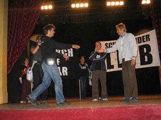 Kamerun und Schlingensief anschließend mit COF-Aufklebern.