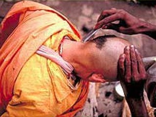 Ein Buddhist läßt sich vor RITUAL-Beginn den Kopf