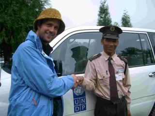 Schlingensief, der als Ausrichter der Pfahlsitzens nach Nepal